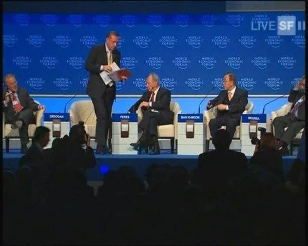 Reuters: "İsrail Cumhurbaşkanı Gazze saldırılarını sesini yükselterek ve parmağını Erdoğan’a uzatarak ateşli biçimde savundu. Cevap vermeye çalışırken sözü yarıda kesilen Erdoğan da paneli terk etti.