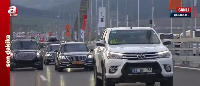 Cumhurbaşkanı Recep Tayyip Erdoğan, açılışını gerçekleştirdiği 1915 Çanakkale Köprüsü'nden, Ulaştırma ve Altyapı Bakanı Adil Karaismailoğlu'nun kullandığı araçla geçiş yaptı.