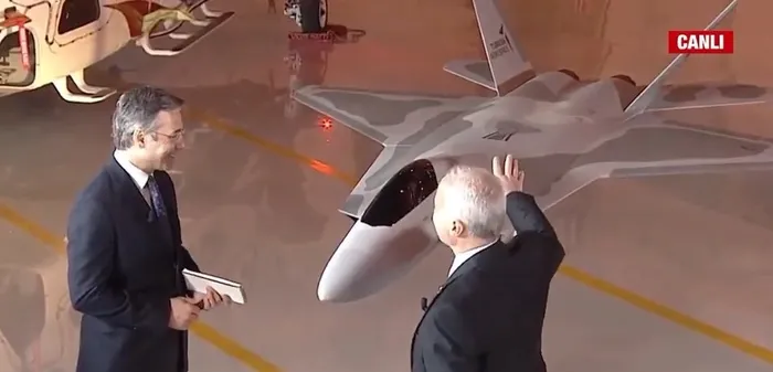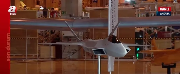 Milli Muharip uçağımız. Birebirine yakın protitipi. Bu 5 nesil savaş uçağı. Radarlar göremez. Çünkü radyo dalgalarını yutar, yansıtmaz. Hava savunma sistemini geçmek istiyorsanız bu uçağın radyo dalgalarını geri göndermemesi gerekiyor. Isı düşünce çıkardığı radyasyon da düşer ışık olarak. Motor havasın ayarlayarak daha soğuk verecek bir sistem var. Hem radarı yansıtmıyor hem de kendisi lamba gibi gökyüzünde yanmıyor. Kenarları keskin. Biz havacılıkta keskin kenarı hiç sevmeyiz. Bunun her tarafında radar var. Bu bir uçak değil, savaş sistemi. Etrafını kolluyor, gelen gidenlere bakıyor. Bunun altın dümdüz. Normalde savaş uçaklarını düz istemeyiz biz. Kapakları var. Kapaklar açılıyor ve füzelerini gönderiyor. Kendi görüyor, bunu görmüyorlar. İkinci yanma odası çalıştırılamadan iş görebiliyor. Yeni bir dünya var. Daha sonra ATAK 2'ye geçeceğiz. ABD'lilerin Apache klasında bir helikopter. Her geçen gün bunu yapmak daha ucuz. 2023'te hangardan çıkacak. Dünyadaki en büyük motoro Amerikalılar yapıyor. Ne Ruslar yapabiliyor, ne de Ruslar yapabiliyor. Bu çift motorlu olmak zorunda tek motor yetmiyor.
