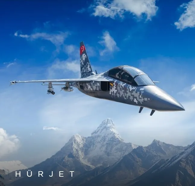 Hafif saldırı ve jet eğitimi uçağı. İçinde jet motoru var. Sesin yüzde 40 daha yükseğini uçuyor. Bunu Milli Muharip'in önüne koyduk. Devletimiz bundan 16 tane sipariş verdi. Türkiye'nin bu tip uçağa ihtiyacı var. Hem eğitim hem de saldırı uçağı. Bu da yaklaşık 1 ton patlayıcı taşıyor. Sesten hızlı uçuyor ve ekonomik. F-16'ya göre çok ekonomik. Dünya piyasasında yeri var. 2023'te uçacak. Bu süpersonik bir uçak. Malezya ile 3 tanesi Türkiye'de, 15 tanesi Malezya'da üretilmek üzere 18 adetlik Hürjet için ihale süreci var. İnşallah olumlu sonuçlanır.