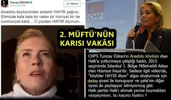 CHP Milletvekili Tuncay Özkan bir süre önce sosyal medya hesabından bir video paylaşarak, "Anadolu köylüsünden anlamlı HAYIR çağrısı" notunu düşmüştü. Ancak kısa süre sonra, Özkan'ın "Anadolu köylüsü" escort-bayan-ilanlari">aliağa escortği kadının CHP Parti Meclisi Üyesi ve CHP İstanbul 1. Bölge Milletvekili Adayı Hüsniye Kaya olduğu ortaya çıkmıştı.