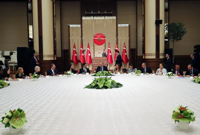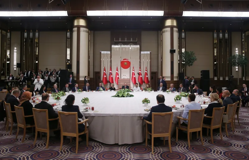 Türkiye Cumhurbaşkanı Recep Tayyip Erdoğan, Cumhurbaşkanlığı Sergi Salonu'nda sağlık çalışanlarıyla iftarda bir araya geldi.