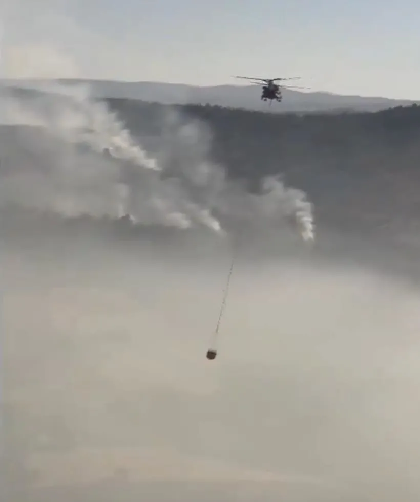"Türk Silahlı Kuvvetlerimize ait 4 adet helikopter ile Manisa’nın Gördes ilçesindeki orman yangınını söndürme çalışmalarına havadan destek sağlıyoruz."