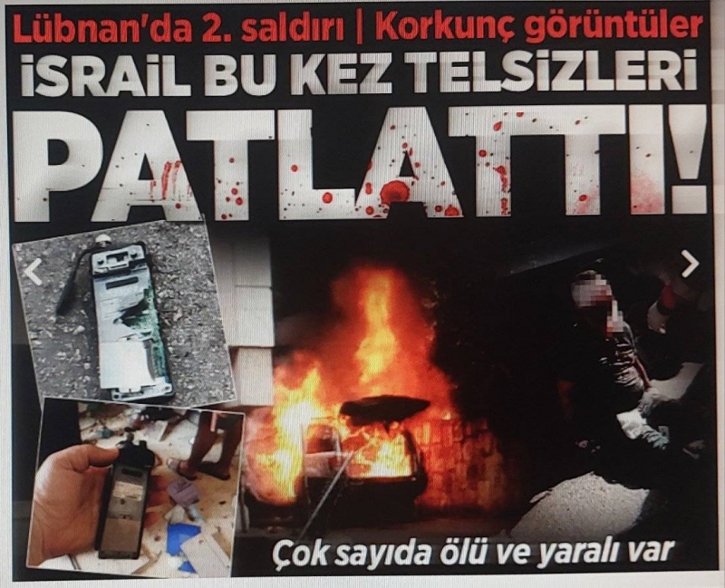 Dün Lübnan genelindeki binlerce çağrı cihazının patlaması nedeni ile 9 kişi hayatını kaybetti, Hizbullah misilleme sözü verdi. ABD medyası cihazlardaki tuzağın daha önce kurulduğunu ve Hizbullah'ın "tuzağı" fark edebileceği endişeyle İsrail Başbakanı Binyamin Netanyahu'nun yanı sıra üst düzey askeri ve istihbarat yetkililerinin bu cihazların patlatılmasına karar verdiğini iddia etti. Dünkü saldırının yanı sıra bugün de Hizbullah ait yaklaşık 500 çağrı cihazı patladı. Saldırının ardından 3 kişinin öldüğü, en az 100 kişinin yaralandığı açıklandı.