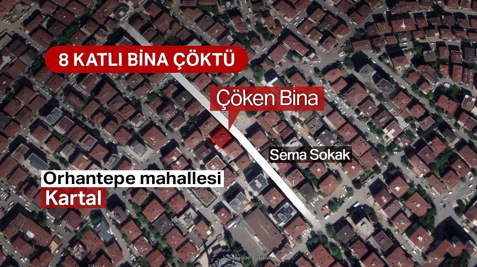 İstanbul'un Kartal ilçesi Orhantepe Mahallesi Bankalar Caddesi Sema Sokak'ta bulunan 8 katlı bir bina saat 16.00 sıralarında çöktü.
