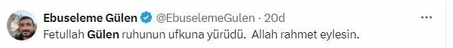 Fetullah Gülen'in yeğeni Ebuseleme Gülen de kendisine ait sosyal medya hesabından yaptığı paylaşımla, ölüm haberlerini doğruladı.