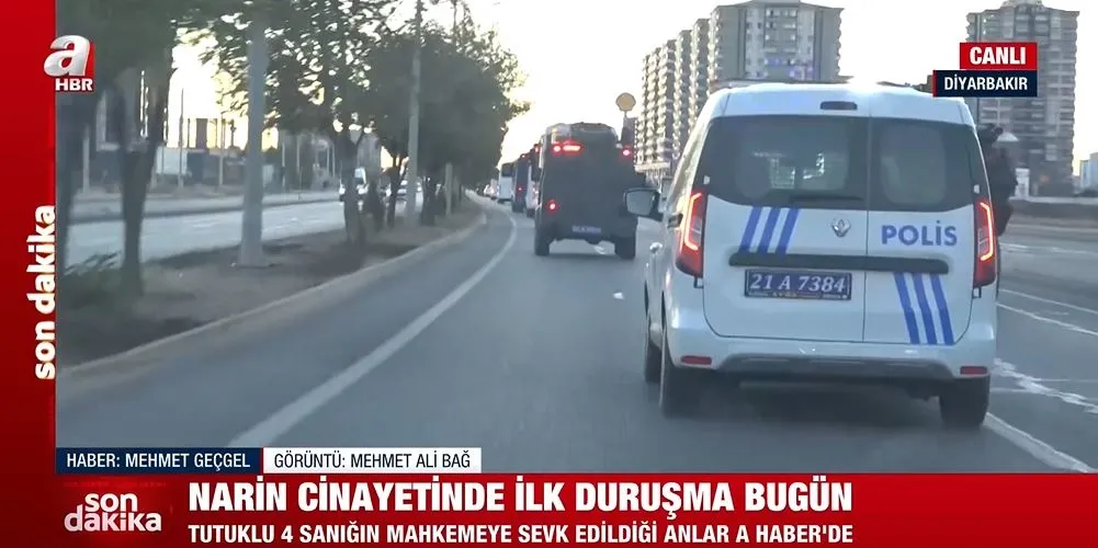 Diyarbakır'da kaybolduktan 19 gün sonra cansız bedeni Eğertutmaz Deresi kenarında bulunan 8 yaşındaki Narin Güran cinayetinde ilk duruşma için tutuklu sanıklar Diyarbakır Adliyesi'ne getirildi. O anları A Haber canlı olarak takip etti.