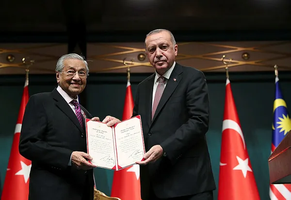 Erdoğan Mahathir Muhammed'e Cumhuriyet nişanı takdim etti.