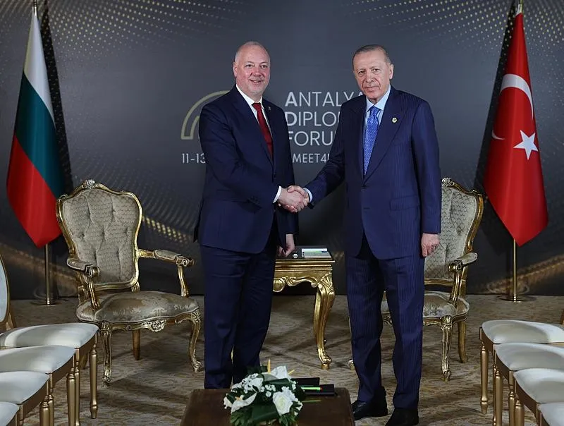 Cumhurbaşkanı Recep Tayyip Erdoğan, 4. Antalya Diplomasi Forumu için Antalya'da bulunan Bulgaristan Başbakanı Rosen Zhelyazkov ile bir araya geldi. Görüşmede Enerji ve Tabii Kaynaklar Bakanı Alparslan Bayraktar, Cumhurbaşkanlığı İletişim Başkanı Fahrettin Altun, Cumhurbaşkanlığı Özel Kalem Müdürü Hasan Doğan ve Cumhurbaşkanı Dış Politika ve Güvenlik Başdanışmanı Akif Çağatay Kılıç da hazır bulundu.