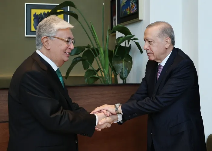Bir süre sohbet eden Erdoğan ve Aliyev'in görüşmelerine, daha sonra Kazakistan Cumhurbaşkanı Kasım Cömert Tokayev de katıldı.