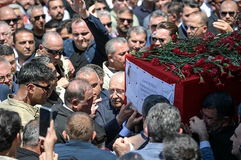 Geçirdiği kaza sonucu 48 yaşında haşatını kaybeden Manisa Büyükşehir Belediye Başkanı Ferdi Zeyrek’in naaşı, Manisa Büyükşehir Belediyesi önünde düzenlenen törenin ardından öğle namazı için Hatuniye Camisi’ne getirildi. Manisa Büyükşehir Belediye Başkanı Ferdi Zeyrek’in eşi Nurcan Zeyrek ve çocukları, tabutuna sarılarak gözyaşlarına boğuldu. CHP Genel Başkanı Özgür Özel de Hatuniye Camisi'ne gelerek, Ferdi Zeyrek’in Türk Bayrağı’na sarılı, üzerinde kırmızı karanfillerin yer aldığı tabutu başında taziyeleri kabul etti.