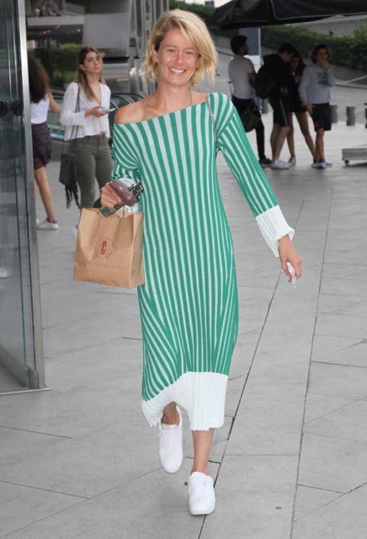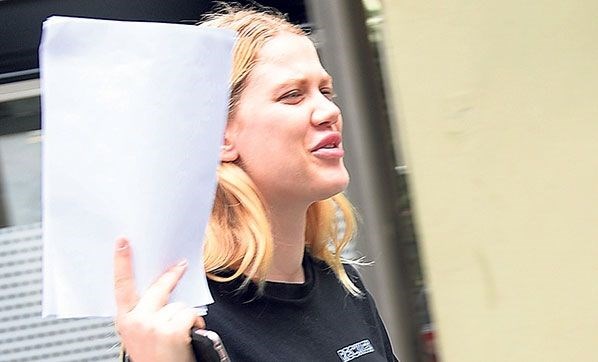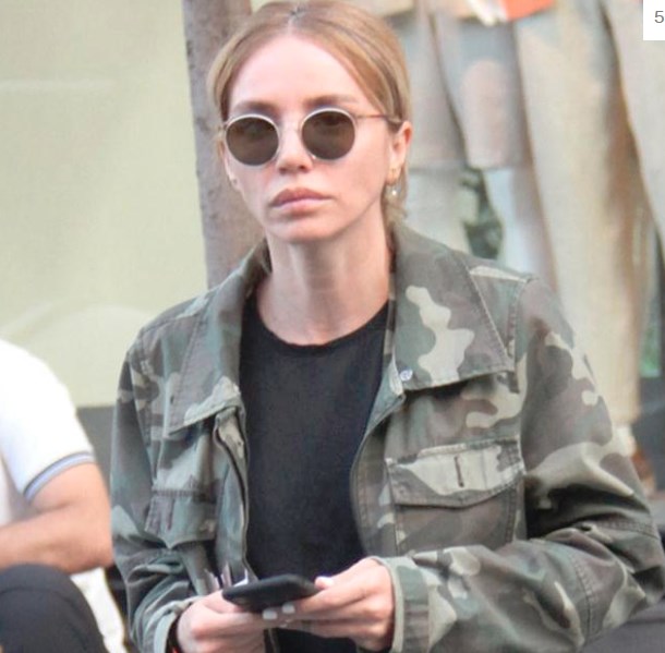 Alışılmışın dışında salaş ve makyajsız tarzıyla kameralara yansıyan Rus model, taytına sıkıştırdığı cep telefonuyla dikkat çekti.