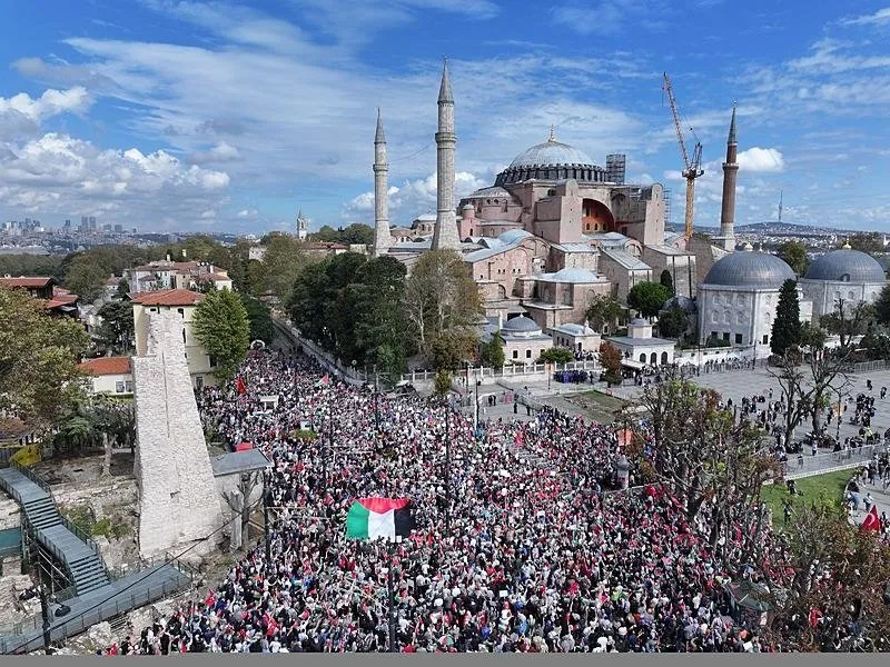 Filistin’e Destek Platformu ve İHH İnsani Yardım Vakfı, bu cesur girişime destek olmak ve Gazze’deki insanlık dramına dikkat çekmek için İstanbul’da bir yürüyüş organize ediyor. 5 Ekim 2025 Pazar günü (bugün), öğlen namazının ardından Ayasofya Camii’nde duyarlı insanlar toplanıldı.