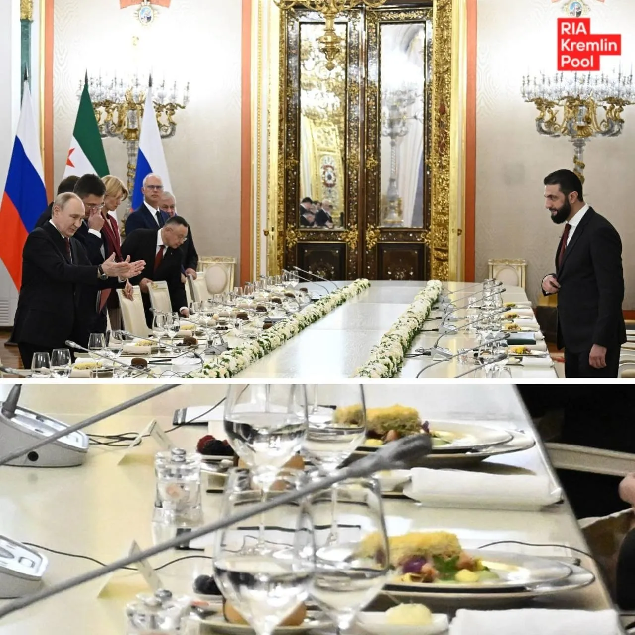 Kremlin, Şara ve heyetinin resmi yemek salonunda ağırlandığı görüntüleri paylaştı.