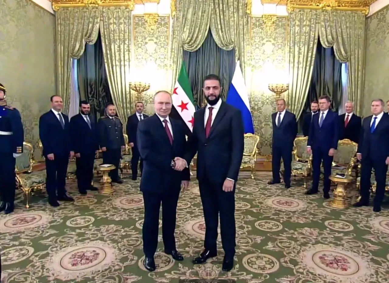 Rusya Devlet Başkanı Vladimir Putin, Suriye Cumhurbaşkanı Ahmed Şara ile Kremlin Sarayı’nda bir araya geldi. Rus heyetinde Rusya Dışişleri Bakanı Sergey Lavrov, Rusya Başbakan Yardımcısı Aleksandr Novak ve Kremlin Dış Politika Danışmanı Yuriy Uşakov yer alırken Suriye heyetinde ise Suriye Dışişleri Bakanı Esad Hasan Şeybani, Suriye Savunma Bakanı Murhef Ebu Kasra, Suriye İstihbarat Başkanı Hüseyin es-Selame ve SuriyeCumhurbaşkanlığı Genel Sekreteri Mahir Şara hazır bulundu.