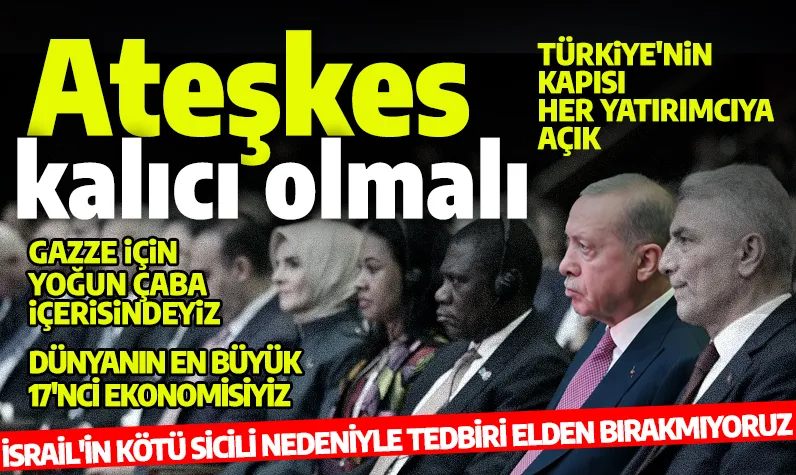 Burada katılımcılara seslenen Cumhurbaşkanı Erdoğan, ekonomiye dair önemli mesajlar verirken Gazze'deki ateşkes sürecine dair dikkat çeken ifadeler kullandı.