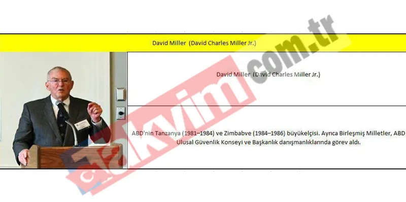 David Miller (David Charles Miller Jr.): ABD'nin Tanzanya (1981–1984) ve Zimbabve (1984–1986) büyükelçisi. Ayrıca Birleşmiş Milletler, ABD Ulusal Güvenlik Konseyi ve Başkanlık danışmanlıklarında görev aldı.