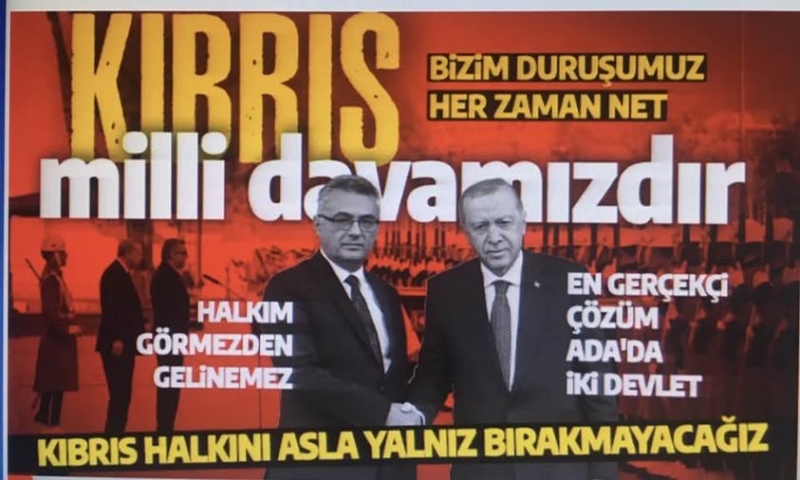Cumhurbaşkanı Recep Tayyip Erdoğan, KKTC Cumhurbaşkanı Tufan Erhürman ile ortak basın toplantısı düzenledi Toplantıda konuşan Erdoğan, "Kıbrıs meselesi için gelecek dönemde atılabilecek adımları değerlendirdik. Bizim Kıbrıs davasında duruşumuz net olmuştur." ifadelerini kullandı.