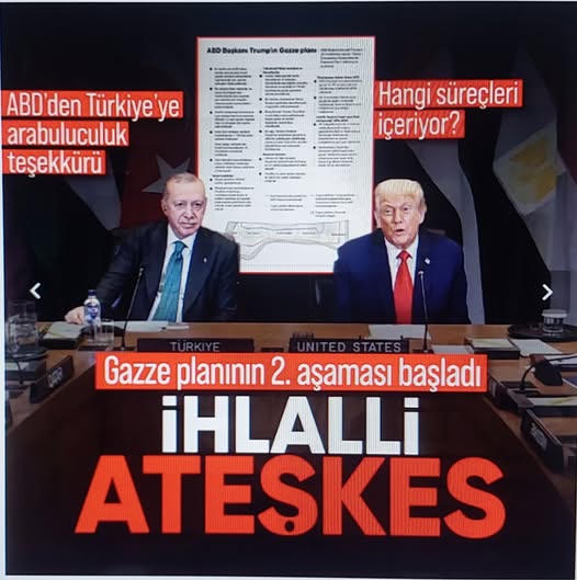 ABD Özel Temsilcisi Steve Witkoff, ABD Başkanı Donald Trump'ın Gazze barış planı kapsamında 2. aşamanın başladığını bildirdi. Witkoff, açıklamasında Gazze'de ateşkes sürecinin bugüne kadarki gidişatına katkıları dolayısıyla Türkiye'ye teşekkür ederek, ikinci aşamanın, Gazze'de geçici bir teknokratik Filistin yönetimi şeklinde "Gazze Yönetimi Ulusal Komitesi"nin kurulması, "Gazze'nin tam olarak silahsızlandırılması" ve "bölgenin yeniden inşası" süreçlerini kapsadığını belirtti.