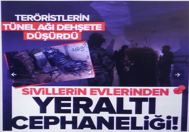 Rakka'nın kuzeyindeki Ayn İsa beldesinde, terör örgütü YPG'nin sivil yerleşim alanlarının altına inşa ettiği geniş çaplı bir tünel ağı gün yüzüne çıkarıldı. Evlerin avlularından açılan tünellerin, askeri hastanelere, silah depolarına ve farklı bölgelere uzanan gizli geçitlerle birbirine bağlandığı belirlendi.