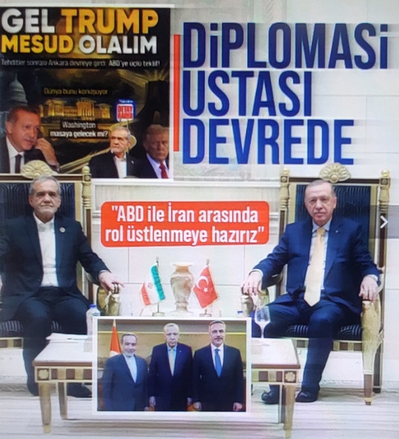 Başkan Recep Tayyip Erdoğan, İran Cumhurbaşkanı Mesud Pezeşkiyan ile bir telefon görüşmesi gerçekleştirdi. Erdoğan görüşmede, gerilimin düşürülmesi ve meselelerin çözüme kavuşturulması için Türkiye'nin İran ile ABD arasında kolaylaştırıcı rol üstlenmeye hazır olduğunu vurguladı. Başkan Erdoğan daha sonra İran Dışişleri Bakanı Abbas Erakçi'yi İstanbul'da kabul etti.