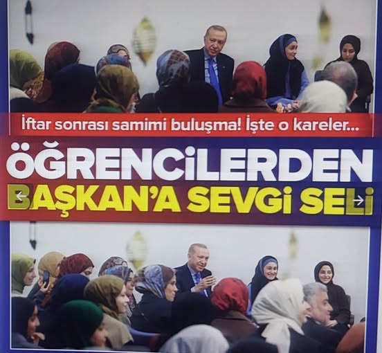Başkan Recep Tayyip Erdoğan, iftar programının ardından Üsküdar’daki Marmara Üniversitesi İlahiyat Fakültesi Vakfı Ayşe Eren Yükseköğrenim Kız Öğrenci Yurdu’nu ziyaret ederek öğrencilerle bir araya geldi. Gençlerle samimi bir sohbet gerçekleştiren Erdoğan, hatıra fotoğrafı çektirdi.