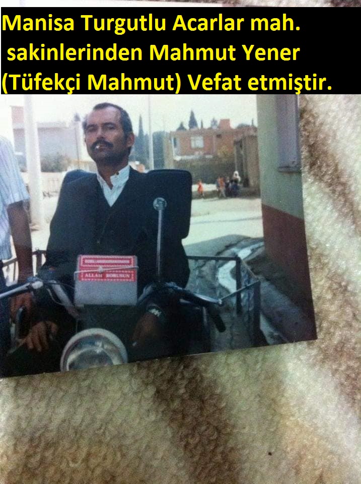 Manisa Turgutlu Acarlar mah. sakinlerinden Mahmut Yener (Tüfekçi Mahmut) Vefat etmiştir.