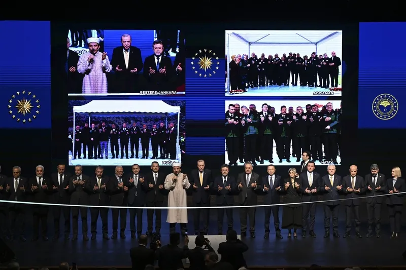 Cumhurbaşkanı Erdoğan, 2026'ya yağışların bereketiyle girdiklerini, barajların dolduğunu, su kaynaklarının yenilendiğini söyledi.