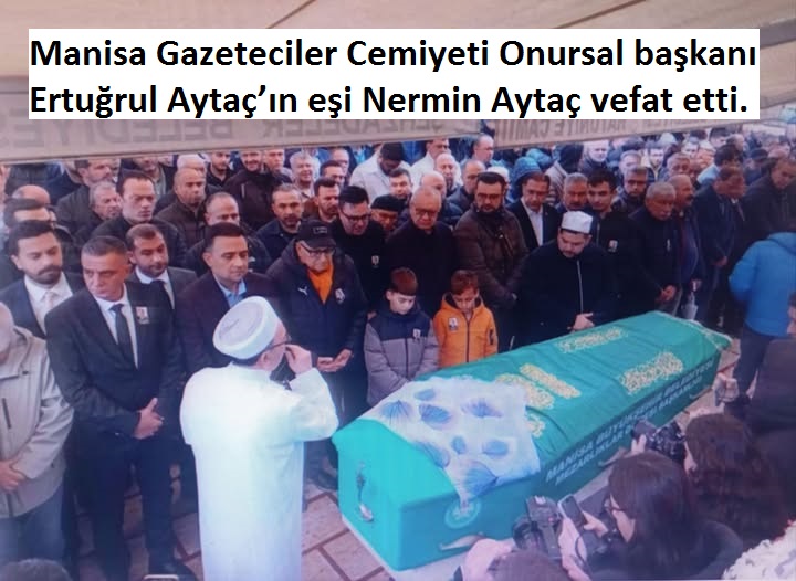Aytaç ailesinin acı günü: Manisa Gazeteciler Cemiyeti Onursal başkanı Ertuğrul Aytaç’ın eşi Nermin Aytaç vefat etti.