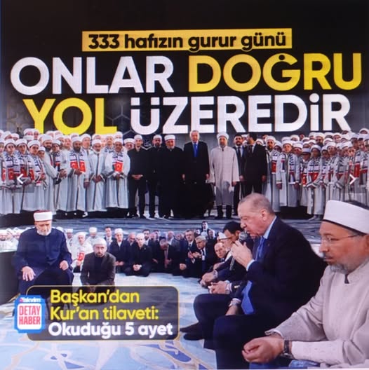 Merkezi Çamlıca’da tarihi gün: 333 hafız icazetini aldı! İlk tilavet Başkan Erdoğan’dan İslam medeniyetinin yaşayan mirası hafızlık geleneği, Büyük Çamlıca Camii’nin kubbesi altında yankılanan tekbirler ve dualarla taçlandı. Zorlu bir eğitim sürecini başarıyla tamamlayan 333 hafızın icazet heyecanına; devlet erkânı, aileler ve binlerce vatandaş tanıklık etti. Başkan Recep Tayyip Erdoğan’ın Kur’an-ı Kerim tilaveti ilgiyle takip edildi. Başkan Recep Tayyip Erdoğan, hafızlık eğitimini tamamlayan 333 öğrenci için gerçekleştirilen hafızlık icazet törenine katıldı.