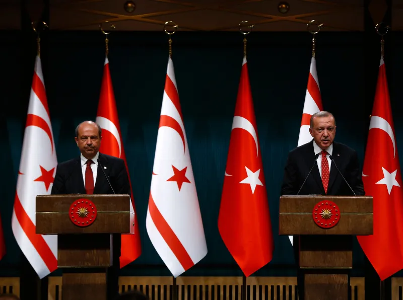 Cumhurbaşkanı Recep Tayyip Erdoğan, KKTC Başbakanı Ersin Tatar ile birlikte ortak basın toplantısı düzenledi. Tatar'ı, Başbakanlık görevini üstlenmesinin ardından ilk resmi ziyareti vesilesiyle misafir etmekten memnuniyet duyduğunu kaydeden Erdoğan, Türkiye'nin, KKTC'nin güvenliği ve refahı için yürüttüğü çalışmaları desteklemeye devam edeceğine dikkat çekerek, "Kendi haklarımızı nasıl savunuyorsak Kıbrıs Türklerinin adadaki ve bölgedeki çıkarlarını da aynı kararlılıkla savunmaya devam edeceğiz. Kıbrıs'taki sorunun ortaya çıkışı da bugüne kadar gelişi de tamamen Rumların uzlaşmaz tavırlarından kaynaklanıyor. Türkiye'nin Kıbrıs'a müdahalesinin sebebi de yine Rumların oradaki soydaşlarımıza karşı giriştiği kanlı saldırılar sebebiyledir. Dün, Kıbrıs Türklerinin kanını akıtarak adayı ele geçirmeye çalışanlar bugün de siyasi ve ekonomik saldırılarla aynı amacın peşindedir. Avrupa Birliği'nin adadaki sorunun çözümü konusunda Birleşmiş Milletler'e ve uluslararası topluma verdiği sözlerin hiçbirini tutmayan Kıbrıs Rum kesiminin yanında yer alması kendi ayıbıdır. Özellikle de geçmişte Kofi Annan döneminde atılan adımlar ve bu adımlar karşısında yine ne yazık ki Rumların tutumları sebebiyle bir referanduma gidilmesi ve bunun neticesinde Kıbrıs Türklerinin sözünde durması Rumların ise sözünde durmaması ama buna karşılık maalesef güney, Avrupa birliğine alınmış, kuzey ise dışlanmıştır. Mali noktada verdikleri sözlerde yine tutulmadı, o gün bugün aynı durum devam ediyor" ifadelerini kullandı.