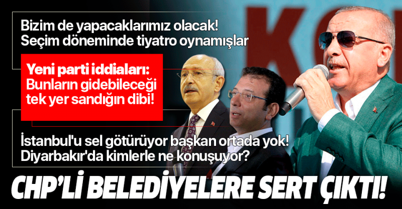 Konya'daki toplu açılış töreninde konuşan Başkan Recep Tayyip Erdoğan, CHP'li belediyelerin işten çıkarmalarına tepki göstererek, "Bizim de yapacaklarımız olacak" dedi. Başkan Erdoğan, "İstanbul'u sel götürüyor başkan ortada yok. Diyarbakır'da kimlerle ne konuşuyor?" diyerek İmamoğlu'nu da eleştirdi. Erdoğan yeni parti iddialarına da "Bunların gidebileceği tek yer sandığın en dibi olacaktır. Siyaset kapalı kapılar ardında kriz bekleyerek yapılacak iş değildir. Tehditlerle, imalarla yapılacak iş değildir." diyerek sert çıktı.