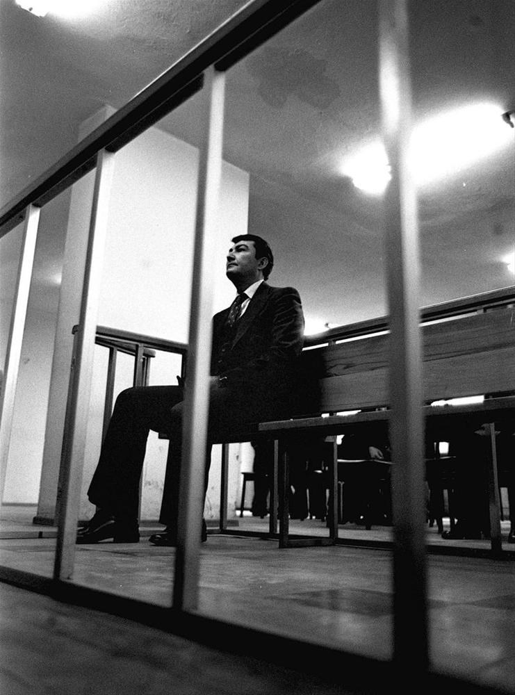 Milliyetçi Hareket Partisi (MHP) Genel Başkanı Alparslan Türkeş (oturan) 30 Ekim 1978 tarihinde Almanya'nın Dortmund kentinde yaptığı salon toplantısında söylediği sözlerle hükümete hakaret ettiği gerekçesiyle Ankara 6. Ağır Ceza Mahkemesi'nde yargılandı. Türkeş'in eşi Seval Türkeş (gözlüklü)