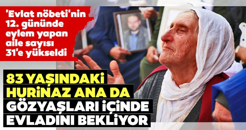 Çocuklarını  aracılığıyla terör örgütü  tarafından dağa kaçırıldığını belirten ailelerin, HDP  il binası önündeki bekleyişi sürüyor. Oturma eylemi 12. gününde devam ederken aile sayısı 31'e yükseldi. 83 yaşındaki Hurinaz ana da 'ten gelerek nöbete katıldı.