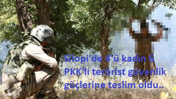 Türk Silahlı Kuvvetlerinin hain terör örgütü PKK'ya karşı yaptığı operasyonlar örgütte çözülmeleri arttı. Şırnak'ın Silopi ilçesinde 4'ü kadın 6 PKK'lı terörist güvenlik güçlerine teslim oldu.