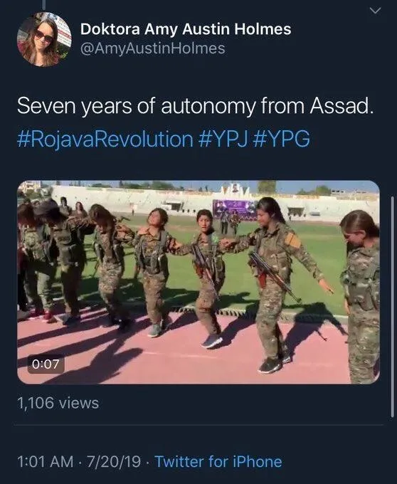 Amy Austin Holmes'in, Suriye'de terör örgütü PYD saflarında çok sayıda fotoğrafı var.