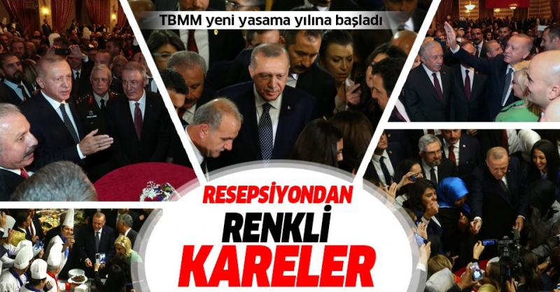 TBMM'nin 27. Dönem üçüncü yasama yılı sebebiyle TBMM Tören Salonu'nda resepsiyon verildi. Başkan Erdoğan'ın da katıldığı resepsiyonda ilginç kareler kaydedildi.