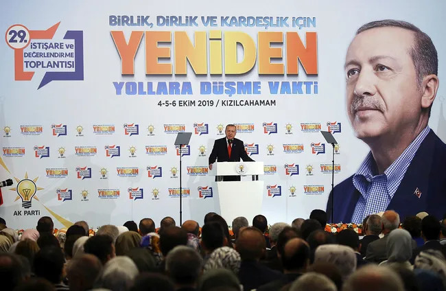 "Ülkemizi terör örgütünden uzak tutmak için sürekli yüzümüze gülenlere diyoruz ki artık söz bitti. Bir taraftan Irak tarafından 30 bin civarında TIR'ı Suriye'ye sokacaksınız, silah, mühimmat yüklü bunları terör örgütüne teslim edeceksiniz sonra stratejik ortağız diyeceksiniz. Hazırlıklarımızı yaptık, harekat planlarımızı tamamladık. gereken talimatları verdik. Kararı verilen ve süreci başlamış olan barış pınarlarının önünü açma ihtimali belki bugün belki yarın denecek kadar yakın. Hem karadan hem de havadan bu harekatı yöneteceğiz."