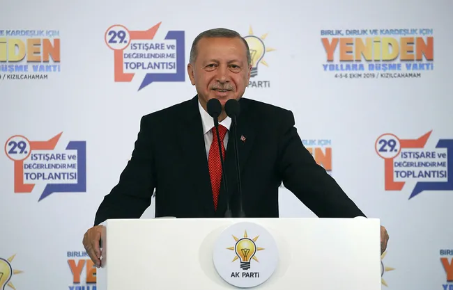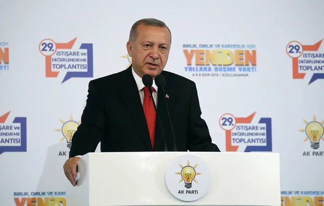 Son dakika haberi... AK Parti 29. İstişare ve Değerlendirme Toplantısı'nda konuşan Başkan Erdoğan, yeni sistemde yüzde 50+1 tartışmalarıyla ilgili "Cumhurbaşkanının seçilme oranının yüzde 50'den 40'a düşürülmesiyle ilgili ne düşüncemiz ne niyetimiz ne planımız ne de çabamız söz konusudur. Yüzde 50 yeni sistemin omurgası, bu iş bitmiştir. Bu tartışmayı bir daha açılmamak üzere kapatıyoruz." dedi. Erdoğan, Suriye sınırında yapılan güvenli bölge çalışmalarıyla ilgili de ABD'ye çok önemli mesajlar verdi. Erdoğan, "Ülkemizi terör örgütünden uzak tutmak için sürekli yüzümüze gülenlere diyoruz ki artık söz bitti. Hazırlıklarımızı yaptık, harekat planlarımızı tamamladık. gereken talimatları verdik. Kararı verilen ve süreci başlamış olan barış pınarlarının önünü açma ihtimali belki bugün belki yarın denecek kadar yakındır. Hem karadan hem de havadan bu harekatı yöneteceğiz." ifadelerini kullandı.