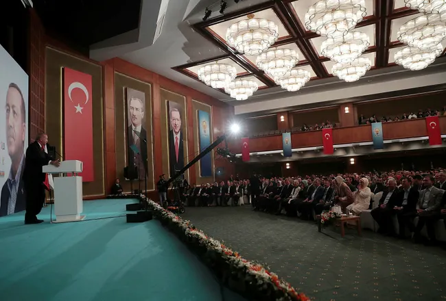 "Partimize yönelik saldırılar, davamızın tehdit olarak görülmesindendir. Bu kadro tek yürek oldukça hiçbir güç bizi hedeflerimize yürümekten alıkoyamaz. 2002 yılı Kasım ayından bu yana ülkemizi ileriye götürmenin çabası içindeyiz. Her alanda tarihi reformları hayata geçirdik. Şehir ziyaretlerinde tüm bu reformları teker teker anlamaya özen gösteriyorum. Bunların yanında siyasi tarihimizin en büyük reformunu yaparak Cumhurbaşkanlığı Hükümet Sistemine geçtik. Bu vesileyle son günlerde yaşanan anlamsız tatışmaya noktayı koymak istiyorum. Seçilme yeterliliğinin yüzde 50'den yüzde 40'a çekilmesi gibi bir çabamız yok. "