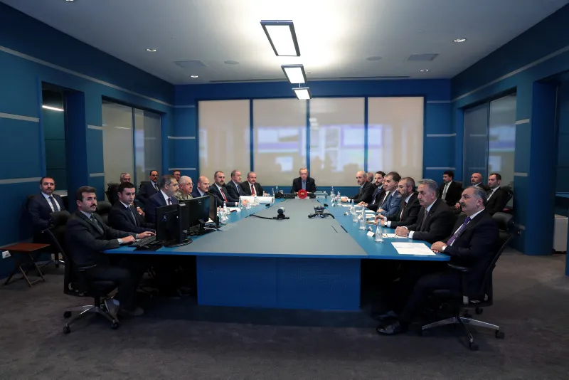 Cumhurbaşkanlığı tarafından paylaşılan fotoğraflarda, Cumhurbaşkanı Erdoğan'ın Milli Savunma Bakanı Hulusi Akar'dan bilgi aldığı görüldü. Hareket merkezindeki toplantıda, TBMM Başkanı Mustafa Şentop, İçişleri Bakanı Süleyman Soylu, Hazine ve Maliye Bakanı Berat Albayrak, Adalet Bakanı Abdulhamit Gül, Genelkurmay Başkanı Orgeneral Yaşar Güler ve Milli İstihbarat Teşkilatı Başkanı Hakan Fidan'ın da bulunduğu görüldü.