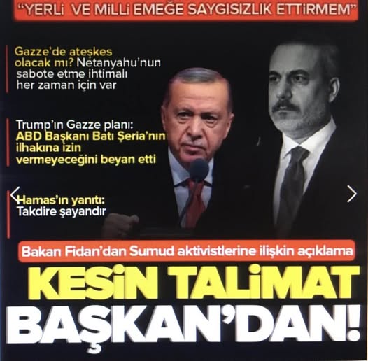Dışişleri Bakanı Hakan Fidan, katıldığı canlı yayın programında gündeme ilişkin açıklamalar bulundu. Aktivistlere ilişkin konuşan Bakan Fidan, "Bu asil aktivistler gözaltına alındıktan sonra da biz bir an önce onların esaretine son verecek bir operasyonel hamleye girmemiz gerekiyordu. Yani Cumhurbaşkanımızın da bu konuda kesin talimatı oldu. İsrail makamlarıyla, güvenlik makamlarıyla Milli İstihbarat Teşkilatımız üzerinden temasa geçtik. Yereldeki büyükelçiliğimizdeki maslahatgüzarlığımız da ilgili makamlarla temasa geçti ve geri planda gerçekten çok fazla insanın emeğinin olduğu bir operasyonla da bugün kardeşlerimizi ülkemize getirdik." dedi.....