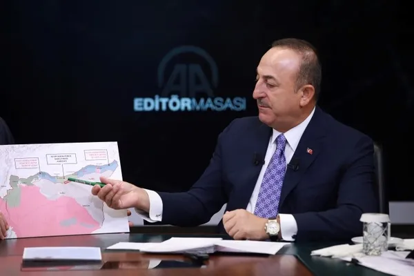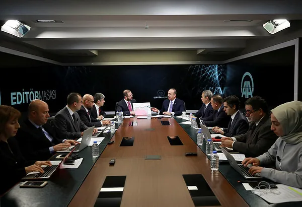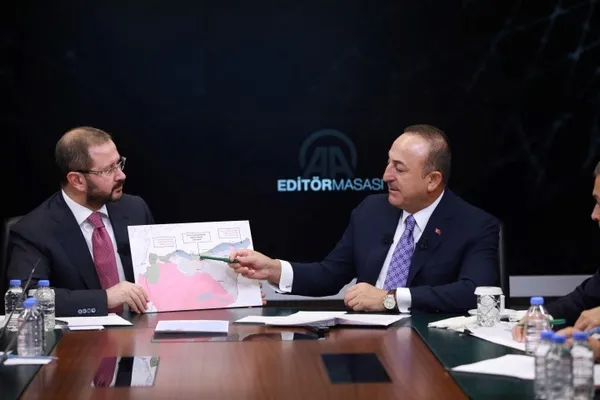 Dışişleri Bakanı Mevlüt Çavuşoğlu, Anadolu Ajansı Editör Masası'nda açıklamalarda bulunuyor. YPG/PKK'lı teröristlerin Kamışlı dahil Türkiye sınırından 30 kilometre güneye çıkarılacağını dile getiren Çavuşoğlu, Türkiye'nin çabalarının, teröristlerin Suriye'nin kuzeyinde kurmak istediği terör devletinin önüne geçtiğini söyledi.