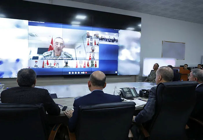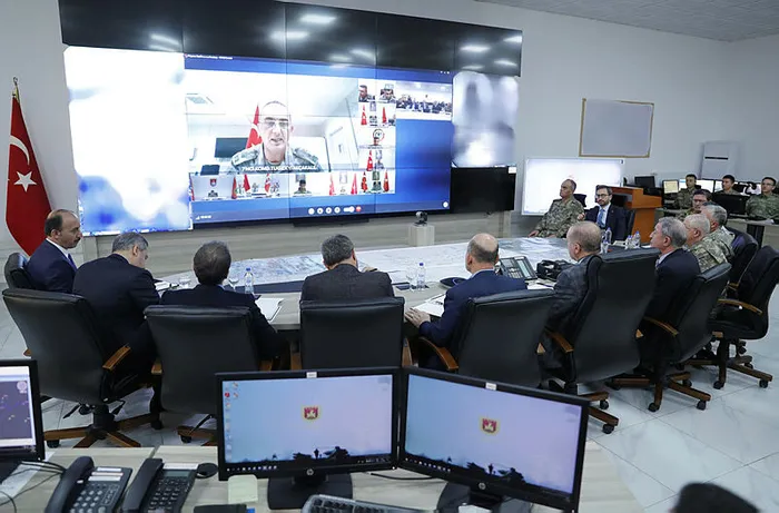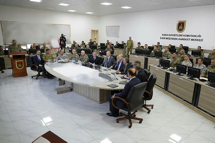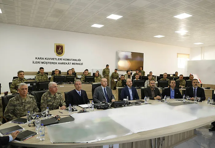 Başkan Erdoğan, Barış Pınarı Harekatı ile ilgili bilgi aldı. Kuvvet komutanları da Başkan Erdoğan'ın ziyareti sırasında hazır bulundu. Genelkurmay Başkanı Orgeneral Yaşar Güler, Kara Kuvvetleri Komutanı Orgeneral Ümit Dündar, Hava Kuvvetleri Komutanı Orgeneral Hasan Küçük Akyüz, Deniz Kuvvetleri Komutanı Oramiral Adnan Özbal da toplantıdaki yerlerini aldı.