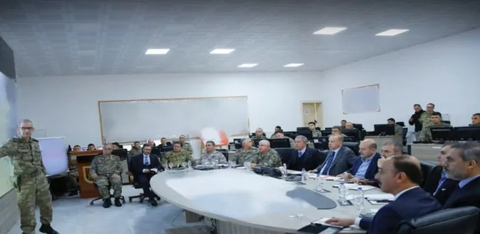Türkiye Cumhurbaşkanı Recep Tayyip Erdoğan, Şanlıurfa'daki Kara Kuvvetleri Komutanlığı İleri Müşterek Harekat Merkezi'ni ziyaret etti.