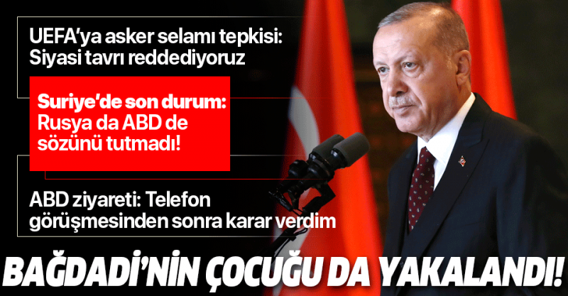 haberi... Başkan  ziyareti öncesi önemli açıklamalarda bulundu. Erdoğan, DEAŞ'ın geçtiğimiz günlerde öldürülen eski lideri Bağdadi'nin çocuğunun yakalandığını duyurdu.