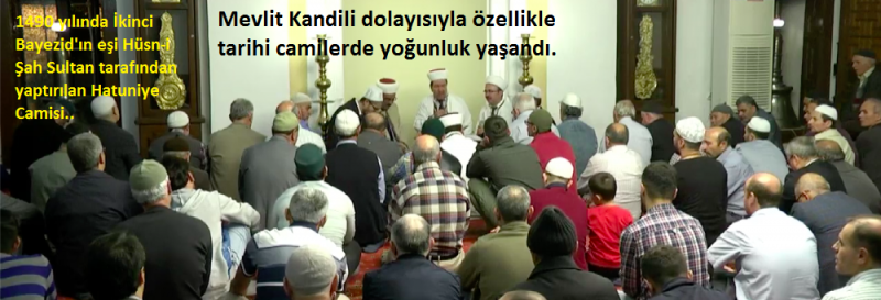 1490 yılında İkinci Bayezid'ın eşi Hüsn-i Şah Sultan tarafından yaptırılan Hatuniye Camisi de Hazreti Muhammed'in dünyaya teşrifi dolayısıyla dolup taştı.