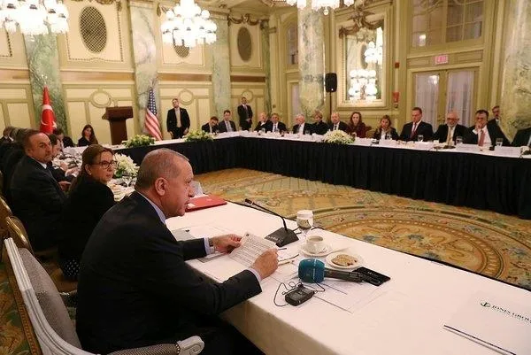 ABD Başkanı Donald Trump'ın daveti üzerine Washington'da bulunan Cumhurbaşkanı Recep Tayyip Erdoğan, ABD Ticaret Odası, Dış Ekonomik İlişkiler Kurulu ve Türkiye-ABD İş Konseyi tarafından düzenlenen Yuvarlak Masa Toplantısı'na katıldı.