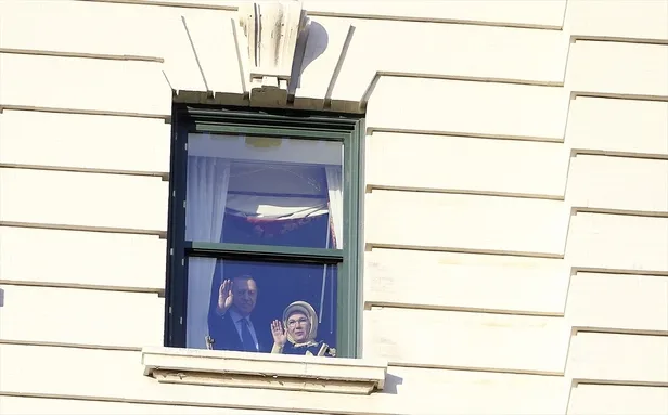 Başkan Erdoğan, ve eşi Emine Erdoğan otel önünde bekleyenleri selamladı.
