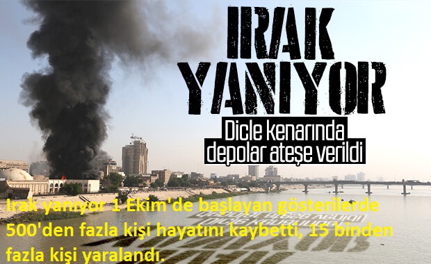 Irak yanıyor 1 Ekim'de başlayan gösterilerde 500'den fazla kişi hayatını kaybetti, 15 binden fazla kişi yaralandı.Irak'ta hükümet karşıtı gösterilerin sürdüğü başkent Bağdat'ta bazı mağazaların deposu yakıldı. Tahrir Meydanı yakınlarında Dicle Nehri kıyısındaki mağazalara ait depoların bulunduğu binanın, kimliği bilinmeyen kişiler tarafından ateşe verildiği görüldü. Binadan yükselen duman Bağdat'ın birçok noktasından fark edildi. Binadaki yangına müdahale için itfaiye ekiplerinin bölgeye intikal etmemesi dikkati çekti.